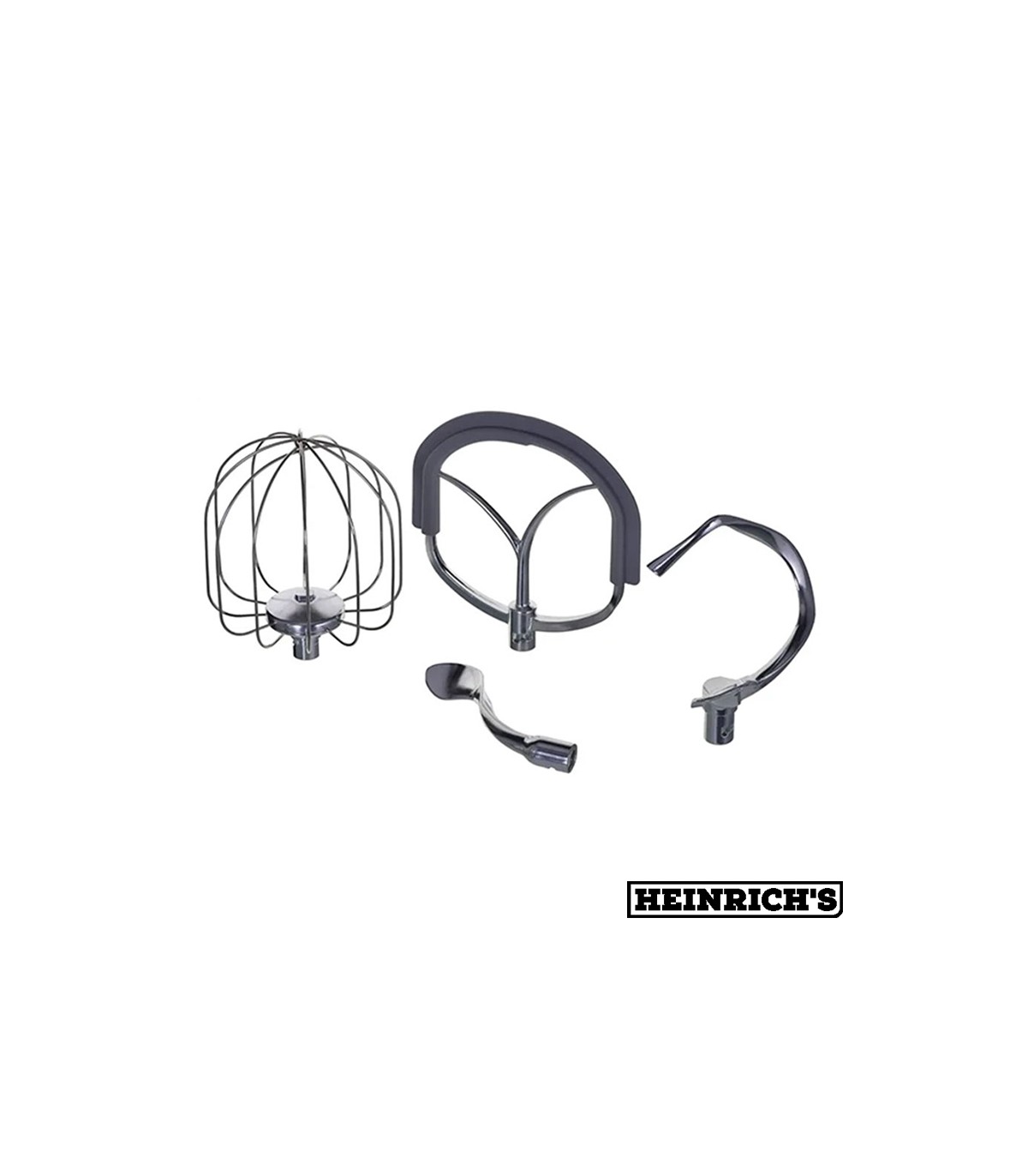 در نهایت می پردازیم به سری های همزن حرفه ای 2500 وات هنریچ 8080. همانطور که در تصویر مشاهده می کنید این همزن مجهز به پدل مخلوط کن حرفه ای، بالونی خامه زن و دو عدد خمیر زن حرفه ای است. جنس پدل مخلوط کن و خمیر زن ها از آلومینیوم دای کست می باشد و بالونی خامه زن نیز از جنس استیل ضد زنگ است. همه سری ها قابل شستشو در ماشین ظرفشویی هستند.